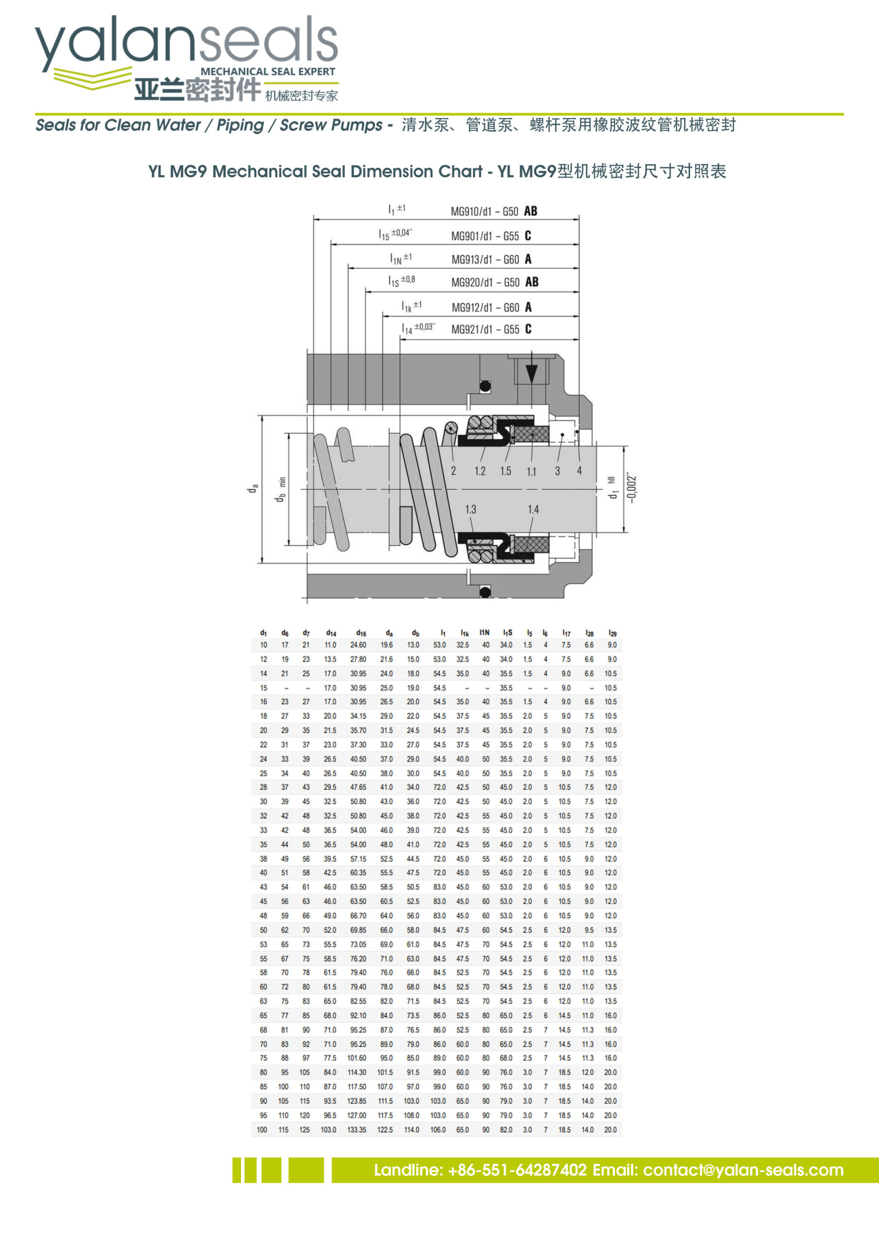 Торцевые уплотнения MG9 для насосов для перекачки очищенной воды, циркуляционных и вакуумных насосов.