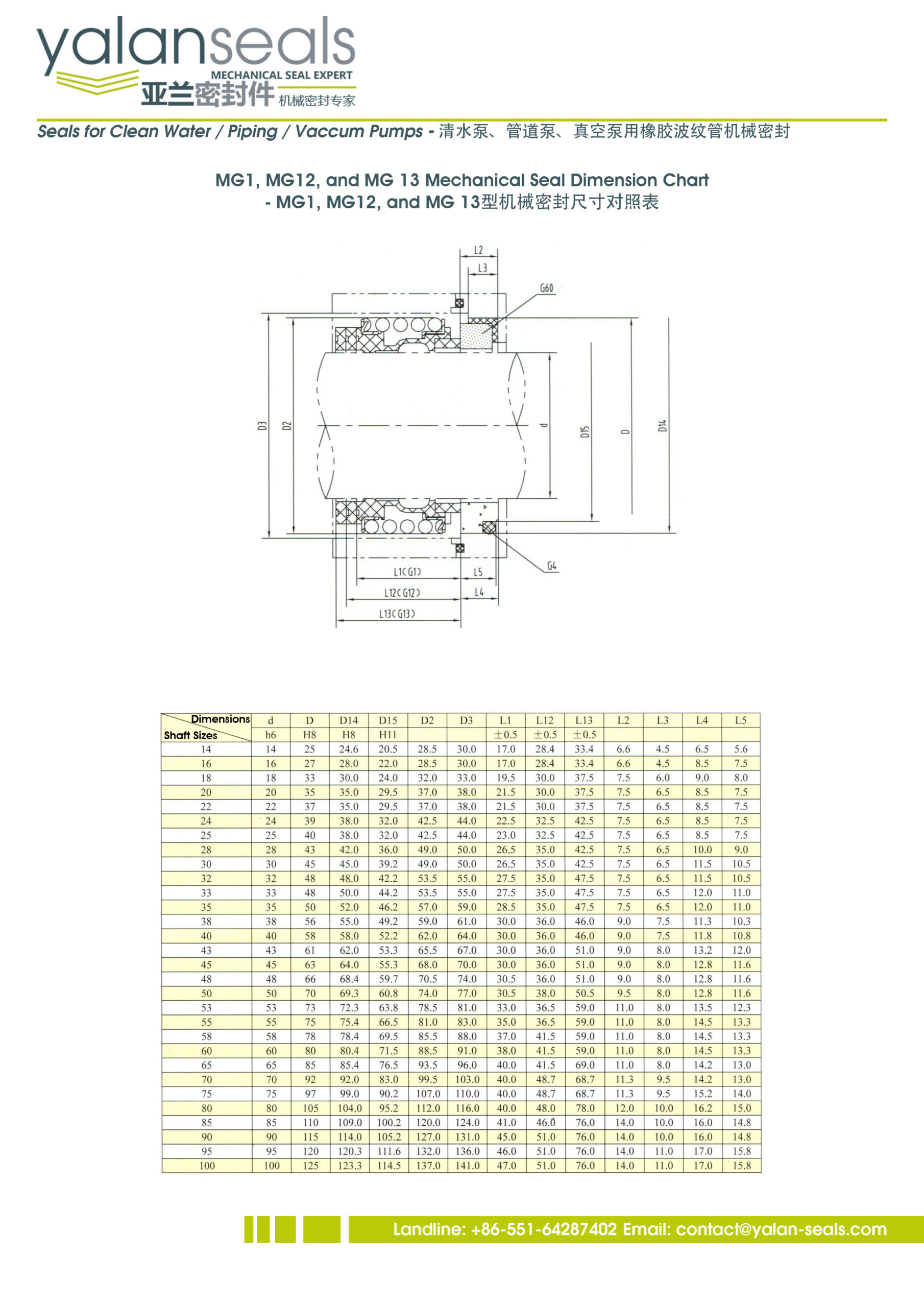 Торцевые уплотнения MG1, AKA 109, U4801 для водяных насосов, центрифужных насосов, погружных двигателей, вакуумных насосов и насосов для трубопроводов.