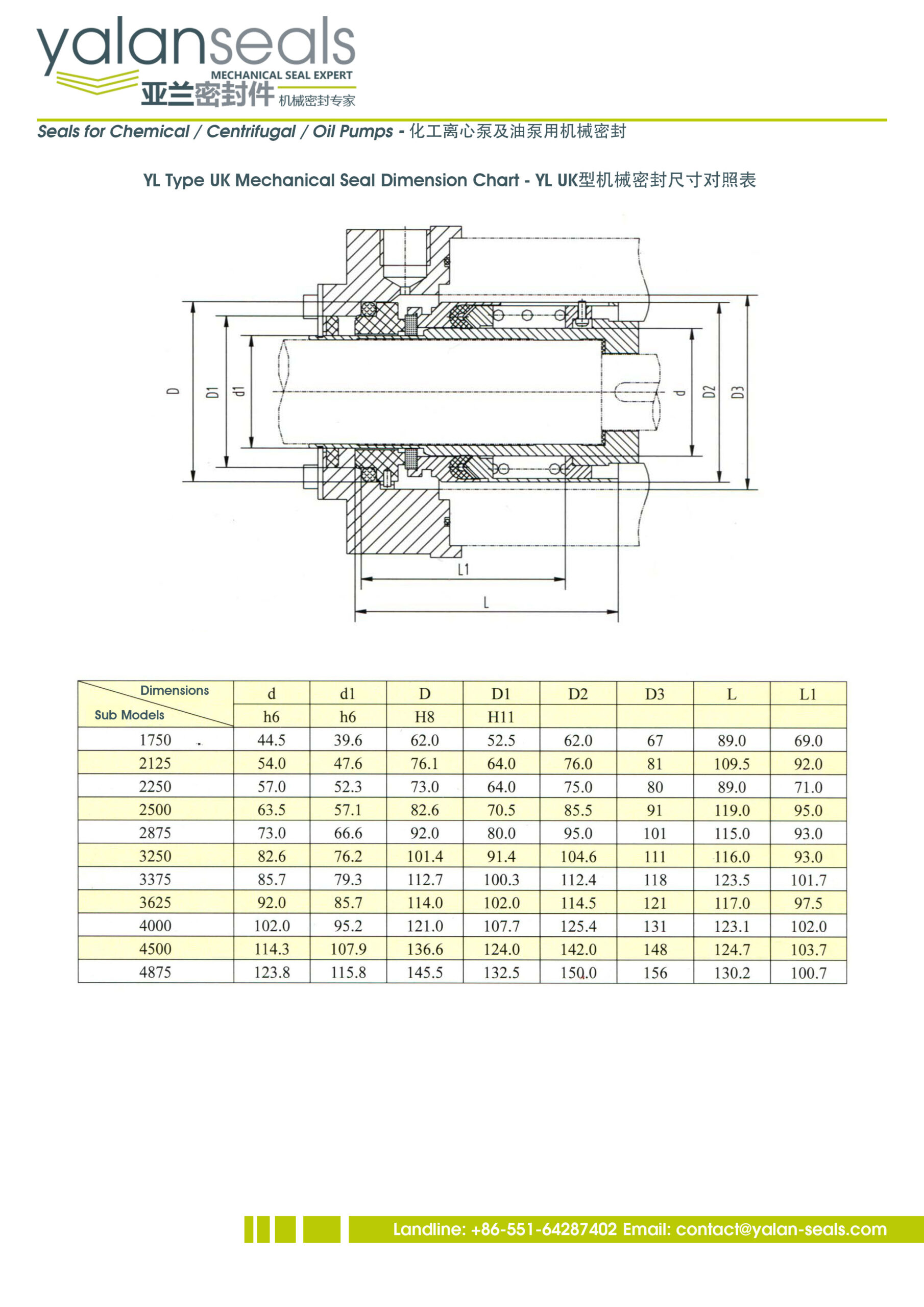 Однопружинные торцевые уплотнения YALAN тип UK для масляных насосов и химических насосов.