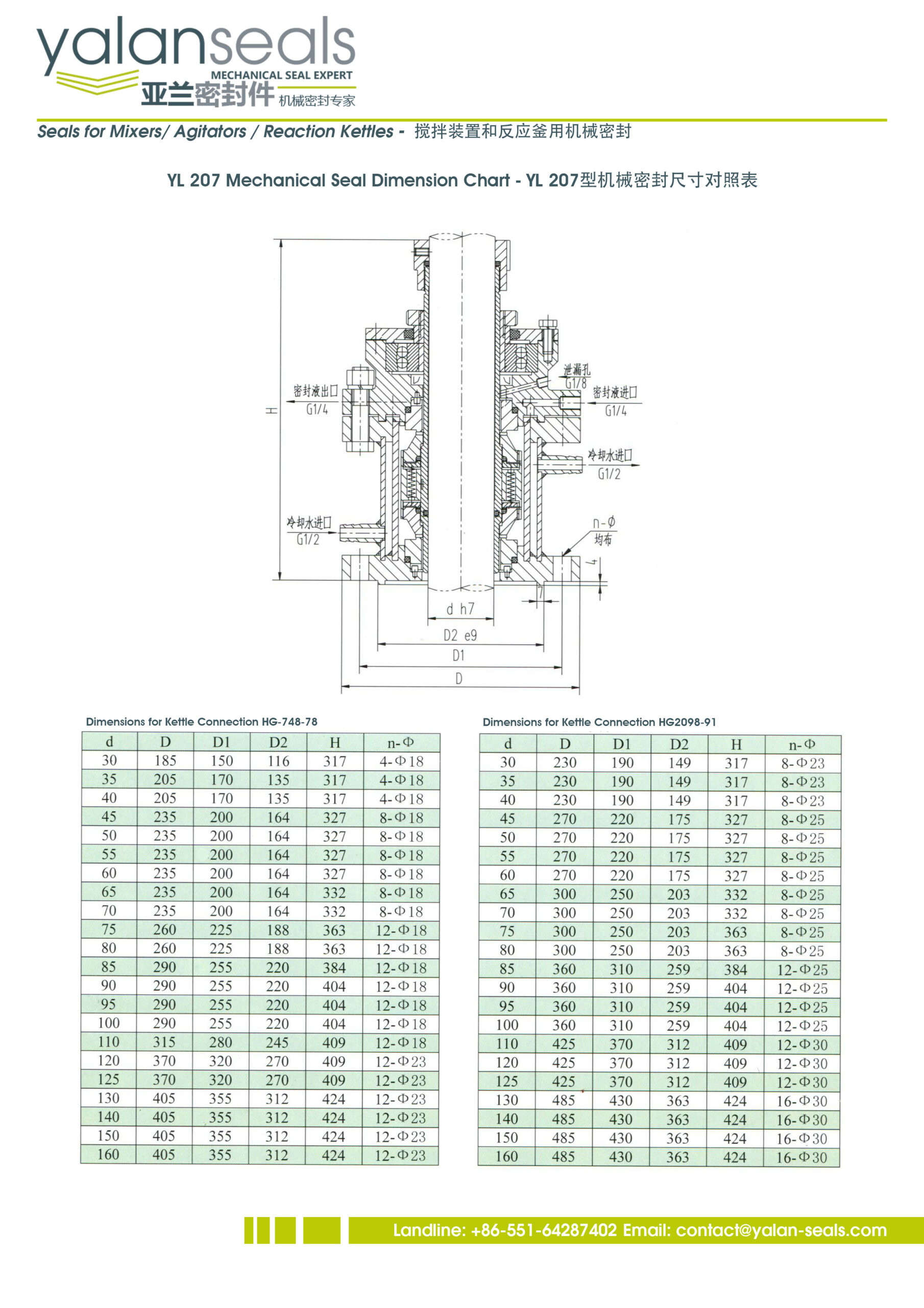 Торцевые уплотнения YALAN 207 для реакторов, сушильных машин и испарителей.
